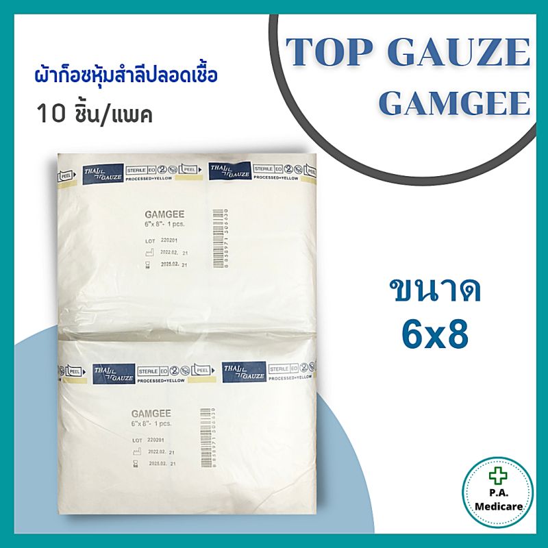 Top Dressing Gauze Sterile ผ้าก๊อซหุ้มสำลี ชนิดปลอดเชื้อขนาดบรรจุ 10 ชิ้น/แพค (บรรจุแยกซองละ 1 ชิ้น) สินค้ายี่ห้อ Thai Gauze ขนาด 3×6, 4×6, 6×8, 6×12, 8×12การใช้งาน เหมาะสำหรับใช้สำหรับซับเลือดใช้สำหรับซับหนองใช้สำหรับซับสารคัดหลั่ง จัดส่งโดย Flash Express