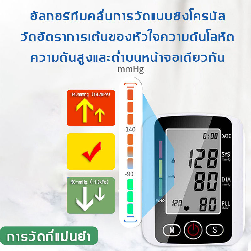 ★ พารามิเตอร์ผลิตภัณฑ์:ยี่ห้อ: KWLชื่อสินค้า: เครื่องวัดความดันโลหิตอัจฉริยะคุณสมบัติ: การออกอากาศด้วยเสียง, เริ่มต้นด้วยปุ่มเดียว, หน่วยความจําอัตโนมัติ, หน่วยความจํา2 * 99คู่, การแสดงอัตราการเต้นของหัวใจ, หน้าจอ LCD ขนาดใหญ่แรงดันอัจฉริยะ: แรงดันและการบีบอัดอัตโนมัติเต็มรูปแบบ, การตรวจจับอัตราการเต้นของหัวใจที่ผิดปกติของ IHBจัดเก็บข้อมูล: หน่วยความจําผลการวัด 99 ชุดสองคน สามารถแสดงการอ่านค่าเฉลี่ยของผลการวัด 3 ครั้งล่าสุด สะดวกสําหรับผู้ใช้ในการดึงการเปรียบเทียบข้อมูล★ สถานที่วัด: บริเวณต้นแขน★ ช่วงการวัด: ★ ความดันโลหิต 0 ~ 280mmHg (0 ~ 37.3kpa) อัตราชีพจร 40 ~ 195 ครั้ง / นาที★ การวัดเส้นรอบวงแขน: 22 ~ 32cm★ ความแม่นยําในการวัด: ค่าความดันโลหิต± 0.4kpa (±3mmHg), ค่าการอ่านจํานวนพัลส์ ±5%★ วิธีการวัด: การสแกนชีพจร / ออสซิลโลเมตรี★ สภาพแวดล้อมในการจัดเก็บ: อุณหภูมิในการจัดเก็บ: -20 °C ~ 50 °C ความชื้นในการจัดเก็บ: 15% ~ 90%★ สภาพแวดล้อมการทํางาน: อุณหภูมิในการทํางาน: 10 °C ~ 40 °Cความชื้นในการทํางาน: 40% ~ 85% ★ โหมดปิด: ปิดเครื่องด้วยตนเองหรือไม่มีการทํางานหลังจาก 60S★ วัสดุ: PC+ABS★ ขนาดจอแสดงผล: 65.7 * 60mm★ขนาดผลิตภัณฑ์: 110*160*80mm★น้ําหนัก: 400g★ รุ่นแบตเตอรี่: 4 * 1.5V (แบตเตอรี่อัลคาไลน์ AAA 4 ก้อน ผลิตภัณฑ์ไม่รวมแบตเตอรี่)★ จํานวนกลุ่มหน่วยความจํา: 99 กลุ่มสําหรับสองคน★ เนื้อหาแพคเกจ:เครื่องวัดความดันโลหิตx1ปลอกแขนx1กระเป๋าเก็บของx1คู่มือผู้ใช้เป็นภาษาอังกฤษx1กล่องสีx1