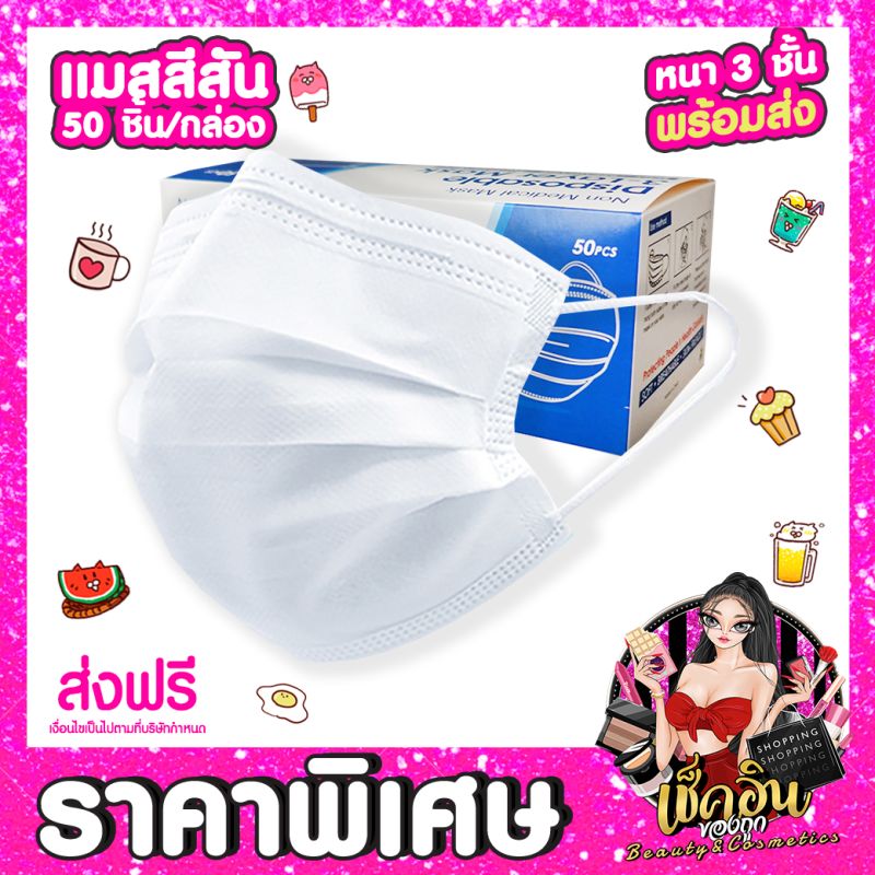 Home » รีวิว CLพร้อมส่ง แมสปิดปาก แมสสี หน้ากาก มีกล่อง Face Mask หน้ากากอนามัย แมสกล่อง50ชิ้น หนา3ชั้น แมส ผ้าปิดจมูก แมสสีฟ้า แมสสีดำ แมสสีขาว แมสสีชมพู
