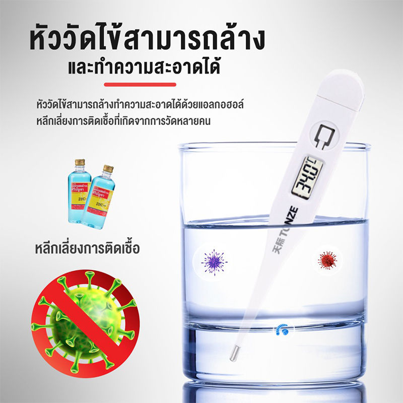 ปรอทวัดไข้ Digital วัดค่าได้แม่นย่ำ ปรอทวัดไข้ดิจิตอล ที่วัดไข้ วัดได้ทั้งเด็กและผู้ใหญ่ ใช้ได้ทั้งครอบครัว คุณภาพดี (พร้อมส่ง) อุปกรณ์วัดไข้ขนาดพกพา เป็นระบบดิจิตอล เพียงกดปุ่มเปิดบริเวณตรงกลาง และสามารถนำไปวัดไข้ได้เลย โดยวิธีการวัดไข้ สามารถวัดได้หลายบริเวณเช่น ใต้ลิ้น รักแร้ ทวารหนัก โดยนำที่วัดไข้นี้ไปวัดไข้บริเวณที่ต้องการวัด ระบบดิจิตอลจะทำงานอัตโนมัติ โดยหลังจากทราบผลวัดไข้แล้วอุปกรณ์จะมีเสียงเตือนดังขึ้นมา นั่นคือเสร็จสิ้นการใช้งาน เป็นอุปกรณ์อีกหนึ่งชิ้นที่ควรมีติดบ้านไว้อย่างยิ่งเกณฑ์การแบ่งระดับของไข้37.5-38.3 ไข้ต่ำ38.4-39.4 ไข้ปานกลาง39.5-40.5 ไข้สูงมากกว่า 40.5 ไข้สูงมาก [ทำให้ชักได้]*ดังนั้นหากวัดไข้ผลออกมา 37.5ขึ้นไปแสดงว่า เริ่มมีไข้แล้ว