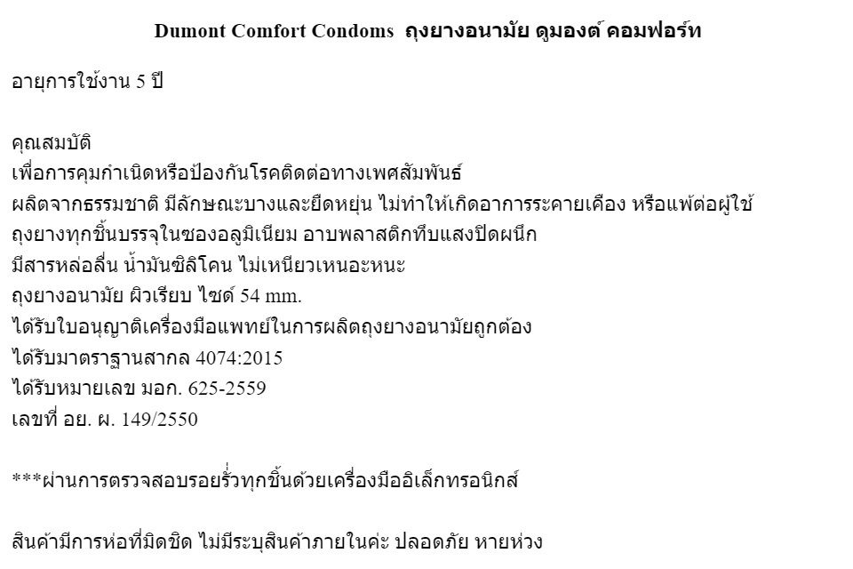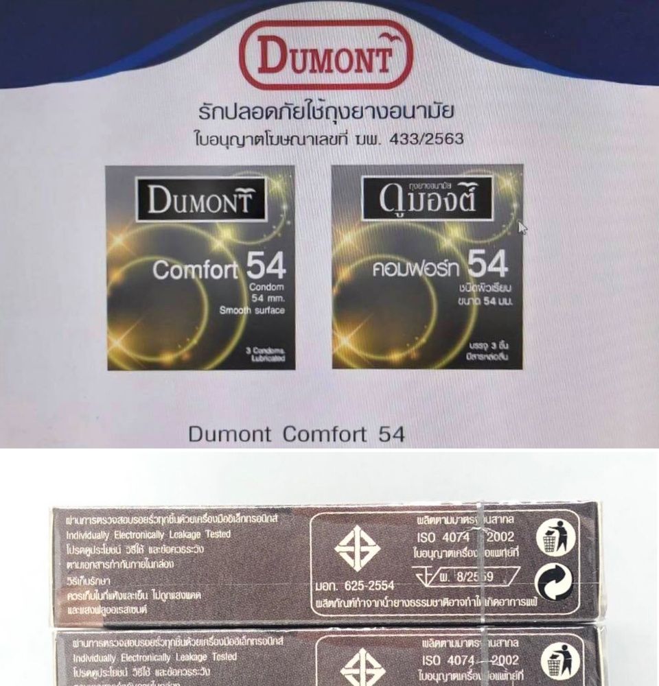 ถุงยางอนามัย ดูมองต์ คอมฟอร์ท ถูกออกแบบมาเพื่อมอบประสบการณ์ที่ สบายเหนือระดับ สำหรับสุภาพบุรุษที่ต้องการขนาดที่ใหญ่ขึ้นและรู้สึกผ่อนคลายกว่าเดิม ด้วยขนาดเส้นรอบวง 54 มม. ซึ่งเป็นขนาดพิเศษที่ช่วยให้คุณสวมใส่ได้อย่างพอดี ไม่อึดอัด และลดความรู้สึกตึงรั้งขณะใช้งาน ทำให้กิจกรรมดำเนินไปได้อย่างราบรื่นและเป็นธรรมชาติที่สุด ตัวถุงยางผลิตจากน้ำยางธรรมชาติคุณภาพสูงตามมาตรฐานสากล ISO 4074 มั่นใจได้ในความปลอดภัยและความทนทาน