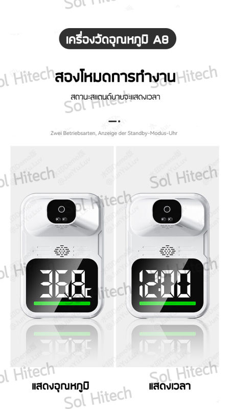 โปรดอ่านรายละเอียดก่อนสั่งซื้อ *** สินค้าพร้อมส่ง!!!!**** ส่งจริงส่งไวมีของในไทยจร้า มีขาตั้งขายแยกด้วยค่ะเครื่องวัดอุณหภูมิ ทำงานได้ทั้งใส่ถ่านหรือเสียบปลั๊กสายUSBได้ (สายUSBไม่ได้เป็นแบบชาร์จถ่านหรือตัวเครื่องนะคะ เพราะเครื่องไม่มีแบตค่ะ ใช้เสียบปลั๊กในการทำงานเหมือนทั่วไปค่ะ)-เครื่องวัดอุณหภูมิแบบติดผนัง-ชนิดของไม่สัมผัส -ช่วงการวัด 1-15 ซม-ความแม่นยำในการวัด 0.1 ℃-ขนาด 130x112x168 (มม.)-น้ำหนัก 400gวงการวัดอุณหภูมิ 32 ℃ -42. ℃ / 89.6 ℉ -108.5 ℉-การกำหนดค่ามาตรฐาน เทอร์โมมิเตอร์ / คำแนะนำ / กล่องบรรจุ / เทปสองหน้า / สกรู-อุณหภูมิจอแสดงผล: LED-วิธีการวัด:สแกนอุณหภูมิด้วยอินฟราเรด-ประเภทของแบตเตอรี่ ปลั๊ก USB / ถ่าน AA 3ก้อน -วัสดุ ABS-เวลาตอบสนอง 0.1 วินาที-น้ำหนักสุทธิ 263.5 ก-วัดอุณหภูมิได้ทั้งฝามือ และ หน้าผาก-ใช้ติดกับผนังหรือติดตั้งกับตัวขาตั้งได้>>>วิธีการใช้งาน ใช้ได้ทั้ง2แบบดังนี้-เสียบสาย USB ข้ากับตัวเครื่องวัดอุณหภูมิเสียบตลอดการใช้งาน หรือสามารถใส่ถ่าน ถ่าน AA 3ก้อน -ใช้ถ่านชาร์จได้ โดยใส่ถ่านตามแนวนอน>>วิธีการตั้งค่า-กดปุ่ม c/f กด1ครั้ง =เปลี่ยนเป็น องศาเซลเซียส /ฟาเรนไฮต์ ☎️เมื่อได้รับของ ให้อัดคลิปตั้งแต่ตอนเปิดกล่องเลยนะคะ เพื่อที่ลูกค้าจะได้รักษาสิทธ์ของตัวเอง 1. เคลมสินค้าได้ในกรณีรับสินค้าผิด 2. ในกรณีที่ได้สินค้าไม่ครบตามที่สั่งไว้ หากไม่มีคลิปเป็นหลักฐานยืนยัน ตอนเปิดกล่อง ทางร้านขอสงวนสิทธ์ในการรับผิดชอบทุกกรณีนะคะ