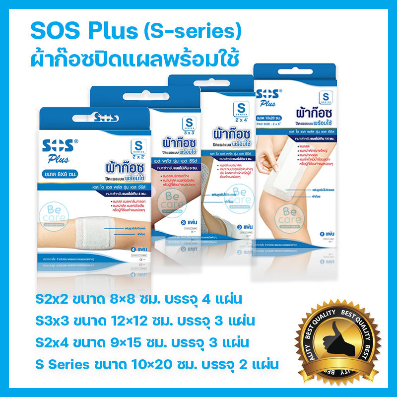 ผ้าก๊อซ sos plus สำหรับปิดแผล กันสิ่งสกปรก เชื้อโรคผ้าก๊อชทำแผล S-series ระบายอากาศดี ไม่อับชื้น พลาสเตอร์ sos plus มีแผ่นดูดซับที่ไม่ติดแผลผ้าก๊อซปิดแผล พร้อมใช้ สะดวกในการใช้งานเอส โอ เอส พลัส สำหรับปิดแผลจากของมีคม ถลอก เย็บ ไฟไหม้ใช้ง่าย เพียงลอกกาว ปะผ้าก๊อตบริเวณแผล