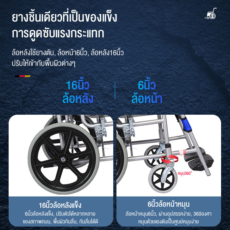 Home » รีวิว เก้าอี้รถเข็น วีลแชร์พับได้ Wheelchair รถเข็นผู้ป่วย รถเข็นผู้สูงอายุ (สีส้ม/สีฟ้) ล้อ 16 นิ้ว มีเบรค หน้า พับได้ พกพาสะดวก