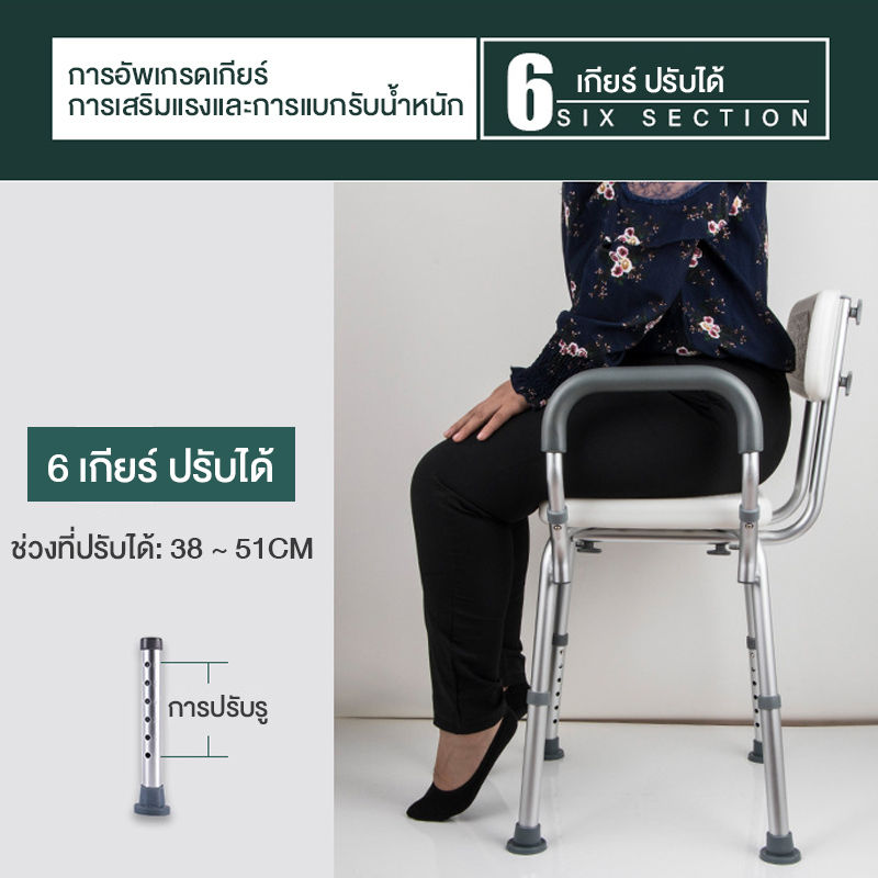 ชื่อสินค้า: เก้าอี้อาบน้ำ วัสดุ: อะลูมินัมอัลลอย ฉากที่ใช้ได้: เก้าอี้อาบน้ำผู้สูงอายุ ขนาดบรรจุ: 59×14×35 น้ำหนักบรรจุ: 3.7kg เก้าอี้นั่งอาบน้ำแบบมีพนักพิงหลัง เหมาะสำหรับผู้ป่วยที่ขยับตัวลำบาก , ผู้สูงอายุ โครงสร้างผลิตจากอลูมิเนียมอัลลอยด์ คุณภาพสูง เบาะนั่งและพนักพิงหลังผลิตจากพลาสติกคุณภาพดี สามารถถอดที่วางแขนและพนักพิงหลังได้ มีจุกยางกันลื่น ขนาดเก้าอี้ กว้าง x ยาว x สูง = 42 x 46 x 81 ซม. สามารถปรับระดับสูงต่ำ ได้ถึง 6 ระดับ รองรับน้ำหนักสูงสุด 150กก.