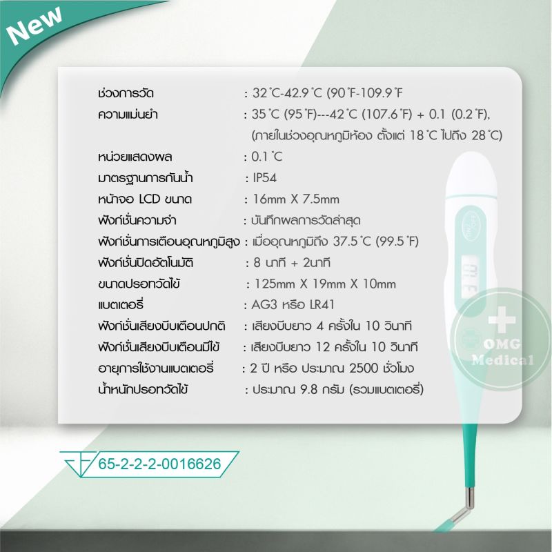 ข้อมูลเฉพาะของ ปรอทวัดไข้ ปรอทวัดไข้ดิจิตอล ปรอทYuwell รุ่น YT308 / PHENOMA รุ่น PT-03 Digital Thermomether ปรอทดิจิตอล ปลายยืดหยุ่น วัดไข้เด็ก แบรนด์ YUWELL SKU 3886271608_TH-14900626096 การรับประกัน Yes รุ่น YT308 ประเภทแพคเกจ แพคเดี่ยว